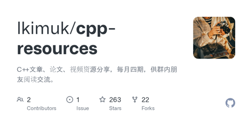 monica_b1998@lemmy.world to C & C++@lemmy.ml · 3 months agoC++ resourcesplus-squaregithub.comexternal-linkmessage-square0linkfedilinkarrow-up13arrow-down10